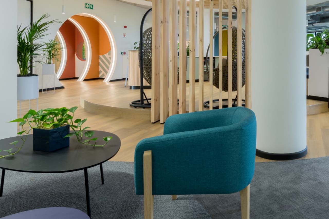 Relaxed seating area with pod chairs in Impact office in Cape Town
